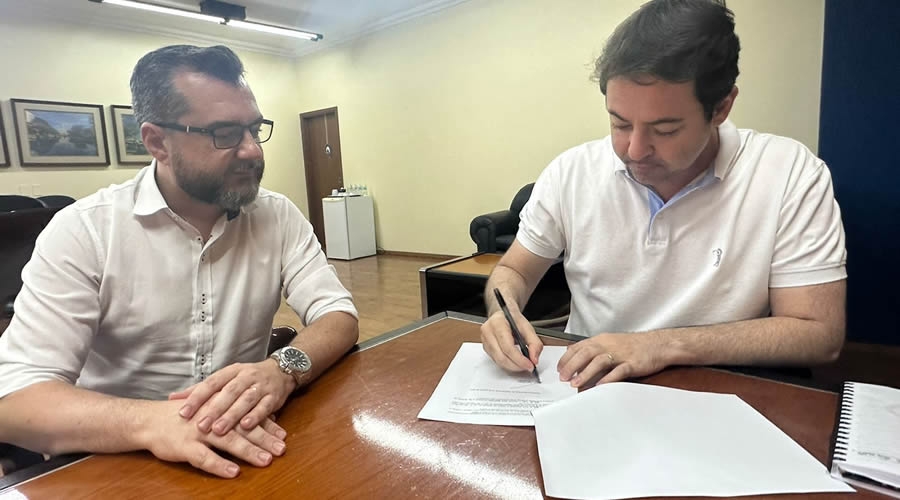 Na segunda-feira (14/08), o prefeito de Bebedouro, Lucas Seren assinou o termo de adesão da Lei Paulo Gustavo, juntamente com o Diretor do Departamento de Cultura, Glauco Corrêa.