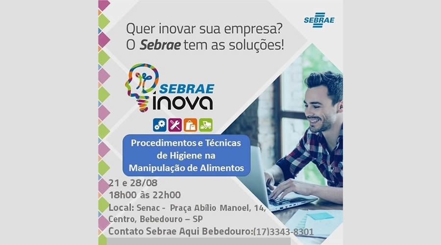 A Prefeitura de Bebedouro, por meio da Vigilância Sanitária e em parceria com o Sebrae, realizará o curso de capacitação gratuita para empresários do segmento de Alimentação.