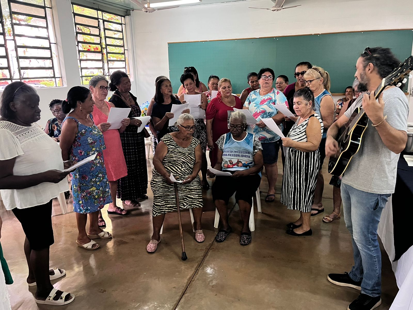 Além do almoço, as idosas realizaram apresentação de canto, por meio do coral que pertencente ao próprio grupo, e cantaram músicas, “Tiro Ao Álvaro” de Adoniran Barbosa, e “Como é grande o meu amor por você” de Roberto Carlos”. A escritora, Laudelina Ferreira da Silva, realizou a leitura do poema “Parabéns CRAS Sul – 10 anos de existência”, de sua própria autoria.