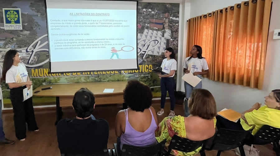 O prefeito Lucas Seren, recebeu segunda-feira (06/11), jovens do programa "Jovem Aprendiz: Agora é sua vez" da ONG Desenvolvendo a Criança e Adolescente (DCA), na sala de reunião da Prefeitura, que realizaram apresentação de conclusão de curso.