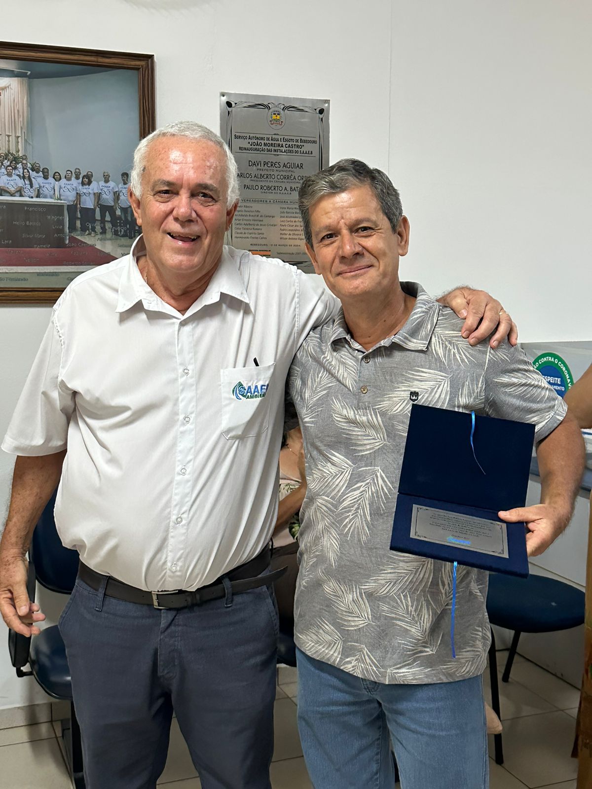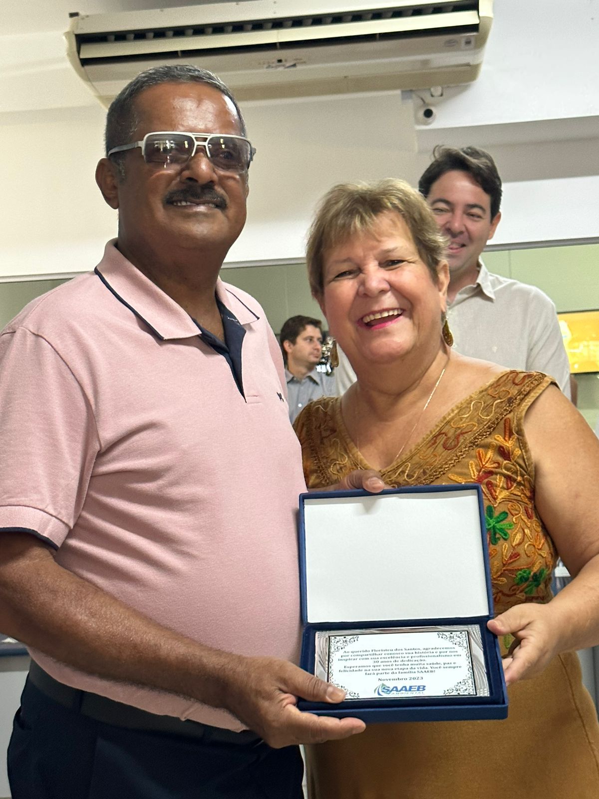 O presidente do SAAEB, Gilmar Feltrim realizou a entrega das placas de homenagem e expressou seu reconhecimento aos colegas de trabalho de tantos anos. “Celebramos com muita admiração, o encerramento de um ciclo dos funcionários que diante de muito trabalho, garantiram suas aposentadorias, após longos anos de dedicação. Que esta nova etapa seja desfrutada com muita alegria, saúde e tranquilidade, pois, é merecido”, comenta o presidente.