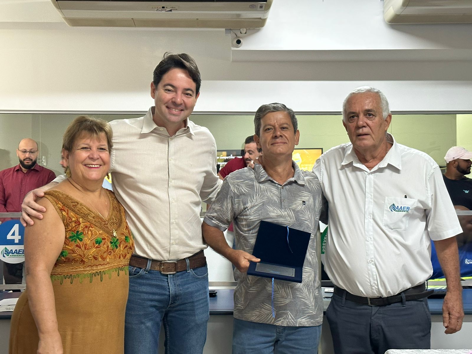 O prefeito Lucas Seren e a vice-prefeita Sebastiana Tavares, participaram na sexta-feira (10/11), no SAAEB(Serviço Autônomo de Água e Esgoto de Bebedouro), da cerimônia dos novos aposentados da autarquia.