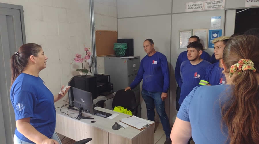 A enfermeira Karina Freitas visitou as empresas, Visu Torneraria, Spido Engenharia, LM Extintores e na praça da base da GCM, com as orientações para os homens.