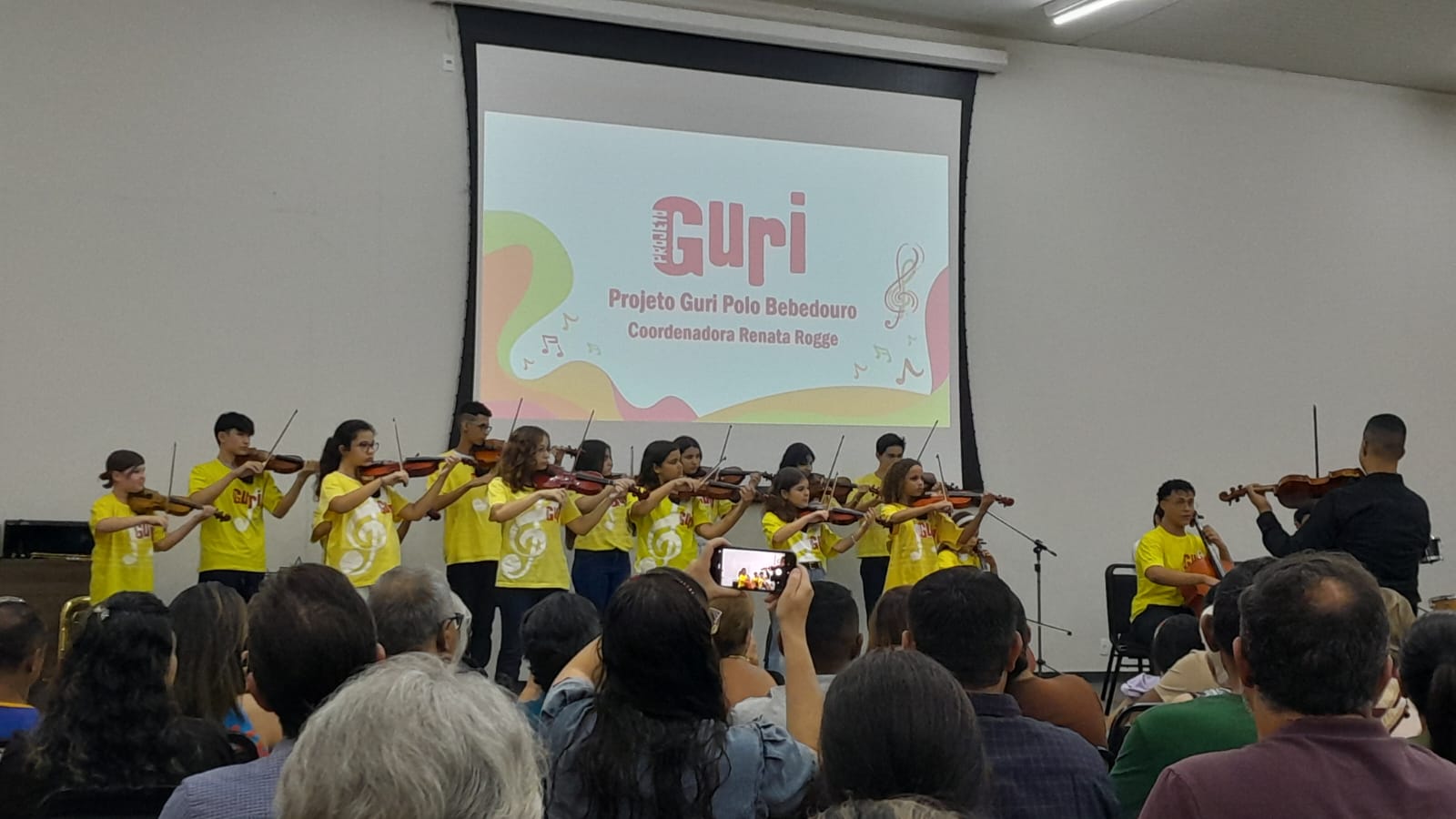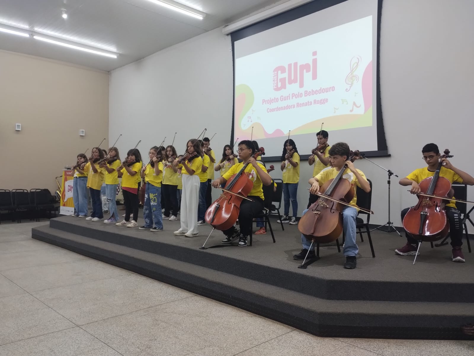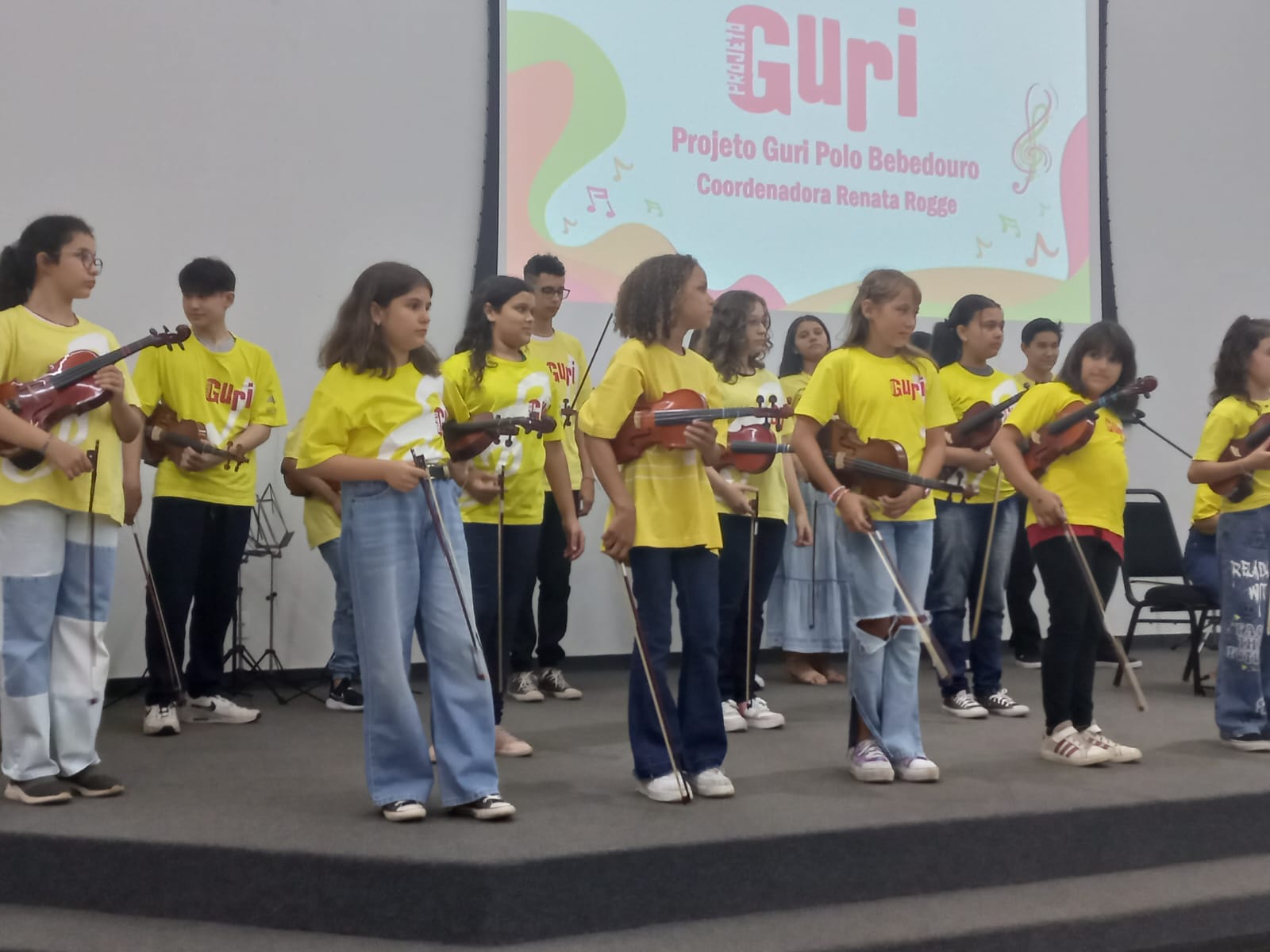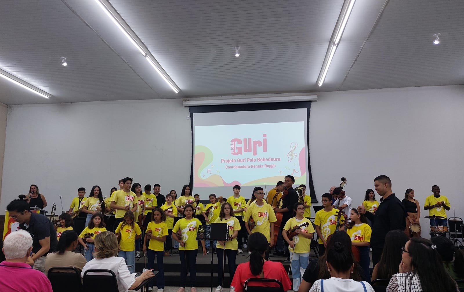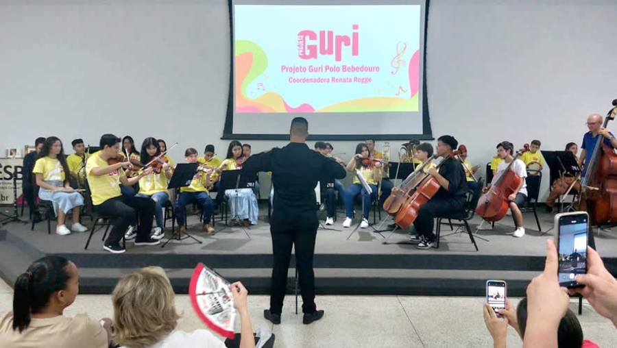 O projeto Guri realizou na terça-feira (28/11), a apresentação musical, nas dependências da Faculdade Municipal de Bebedouro (IMESB), com a participação de crianças e adolescentes da cidade. A vice prefeita, Sebastiana Tavares presente no evento.
