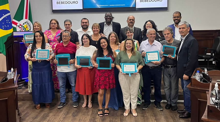 A Câmara Municipal de Bebedouro, homenageou quinta-feira (30/11), os servidores que se aposentaram no ano de 2022, através do “Diploma Erbanez Hernandes”, que tem por finalidade homenagear aos funcionários aposentados que trabalharam no serviço público.