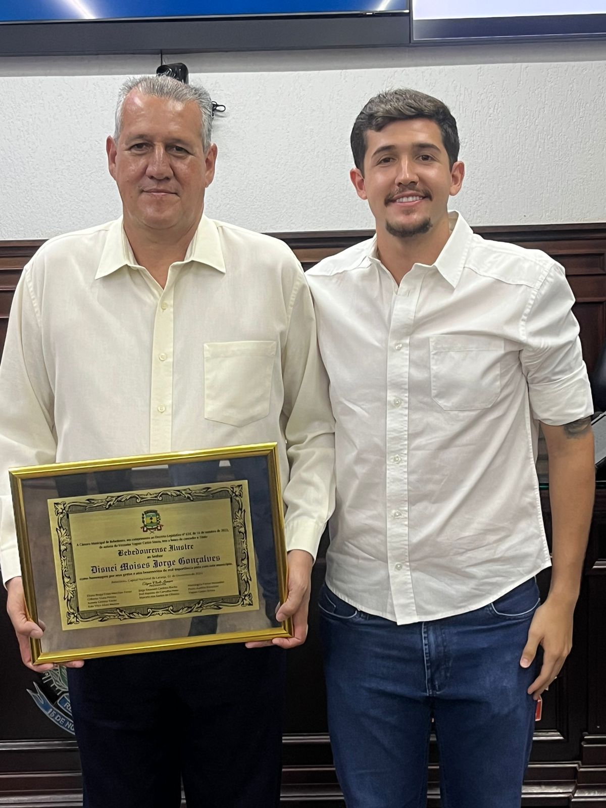 A Câmara Municipal de Bebedouro, homenageou na sexta-feira (01/12), o servidor público, Disnei Moises Jorge Gonçalves, ao título de Bebedourense Ilustre.