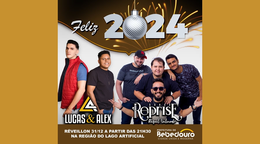 O réveillon no Lago Artificial já é uma tradição na cidade atraindo o público de toda região. A programação do Show da Virada 2023/2024, organizado pela Prefeitura de Bebedouro, traz artistas da cidade e grandes talentos da nossa terra.