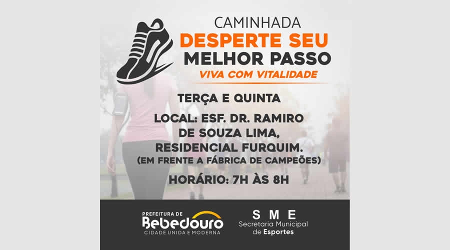 A Prefeitura de Bebedouro, através da Secretaria Municipal de Esportes (SME), realiza o projeto Caminhada: “Desperte Seu Melhor Passo”.