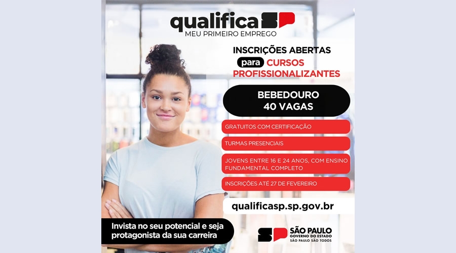 A Prefeitura de Bebedouro, através do Fundo Social de Solidariedade (FSS), em parceria com o Qualifica São Paulo, está com inscrições abertas para cursos profissionalizantes.