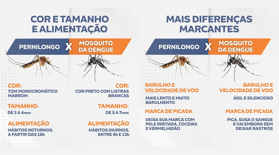 A Prefeitura de Bebedouro, através da Secretaria Municipal de Saúde (SMS), explica sobre a diferença entre mosquito da Dengue e Pernilongo.