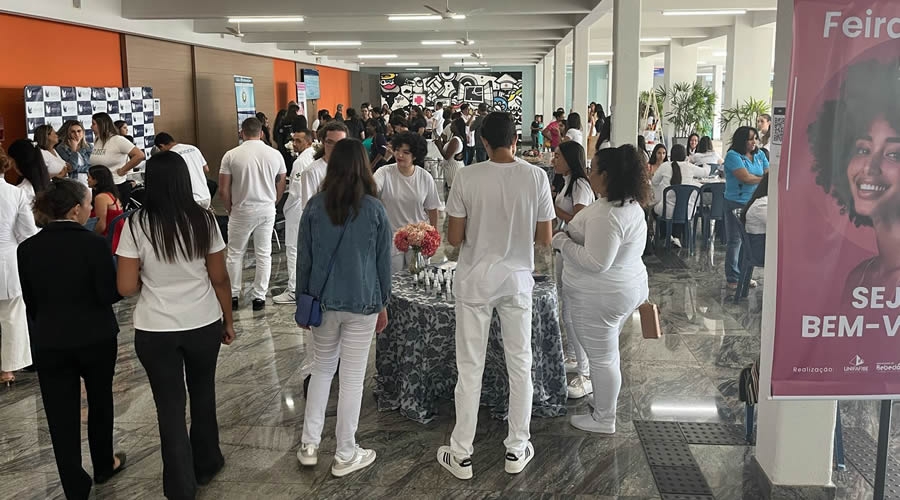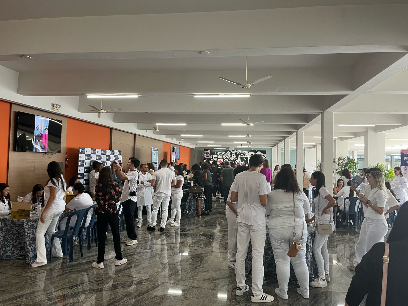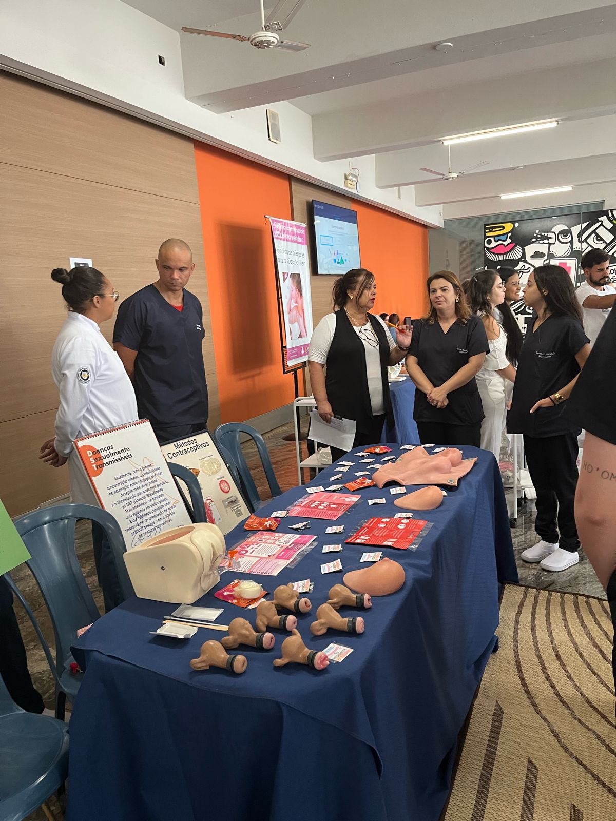 Participaram os profissionais dos cursos de Nutrição, Fisioterapia e Enfermagem, explicando sobre alimentação saudável e promoção da saúde e saúde da mulher.