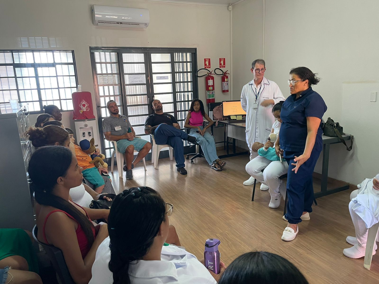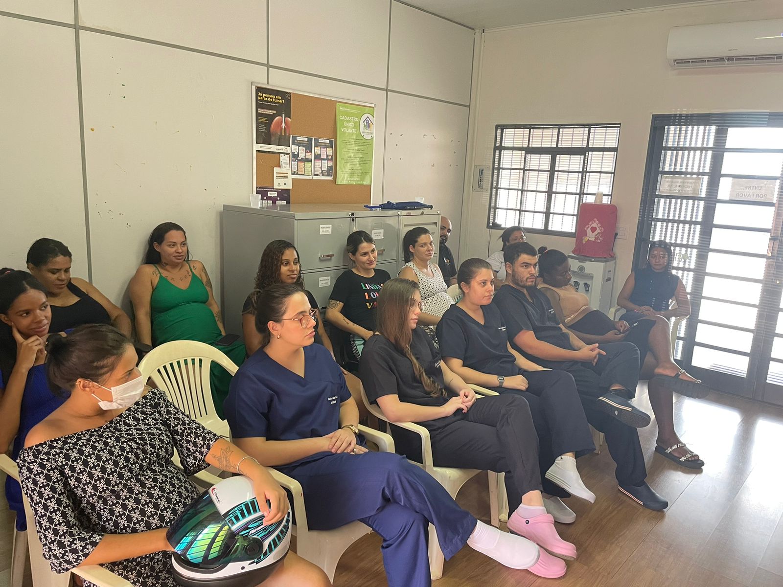O curso abordou assuntos relacionados à gestação, parto, período pós-parto, cuidados com o recém-nascidos, saúde bucal e planejamento familiar; esclarecendo às gestantes, dúvidas e expectativas sobre os diversos temas apresentados.