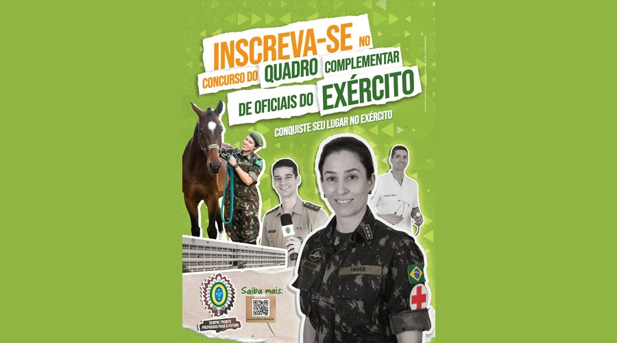 O Exército Brasileiro está com inscrições abertas para o concurso de Admissão e Matrícula no Curso de Formação e Graduação de Oficiais, de Carreira Militar, em diversas áreas.