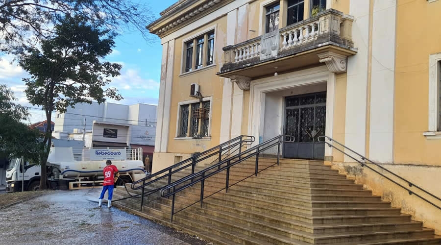 A Prefeitura de Bebedouro, por meio da Garagem Municipal, realizou a higienização e limpeza da Praça 9 de Julho, nesta segunda-feira (03/06).