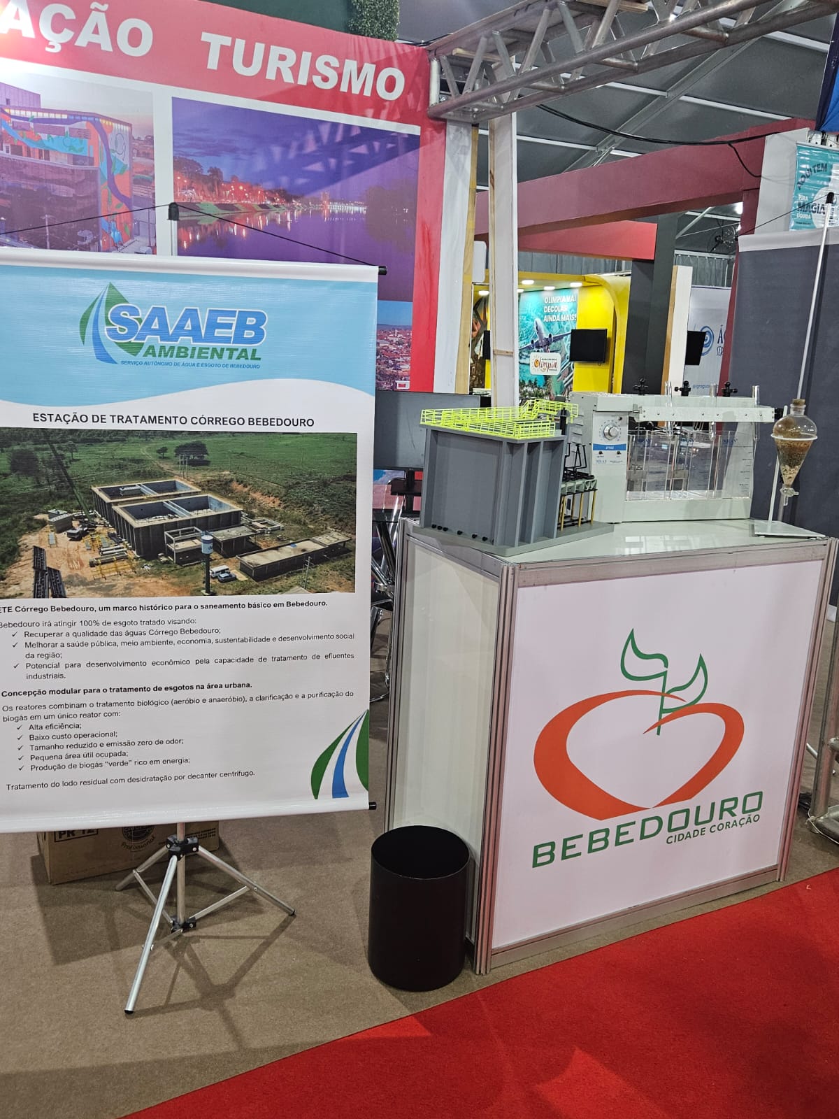 Presente no evento, o Serviço Autônomo de Agua e Esgoto de Bebedouro (SAAEB), apresentou maquetes que ilustravam o sistema de tratamento de água e esgoto, destacando a construção de uma Estação de Tratamento que terá 100% do esgoto tratado.