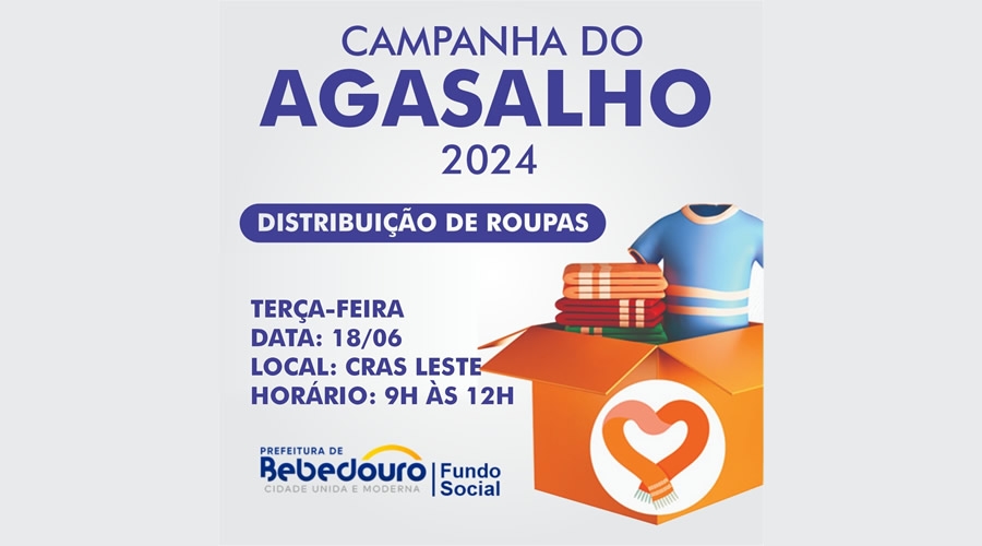 A Prefeitura de Bebedouro, por meio do Fundo Social de Solidariedade (FSS), realizará a distribuição de agasalhos, terça-feira (18/06), das 09h às 12 horas, no CRAS Leste.