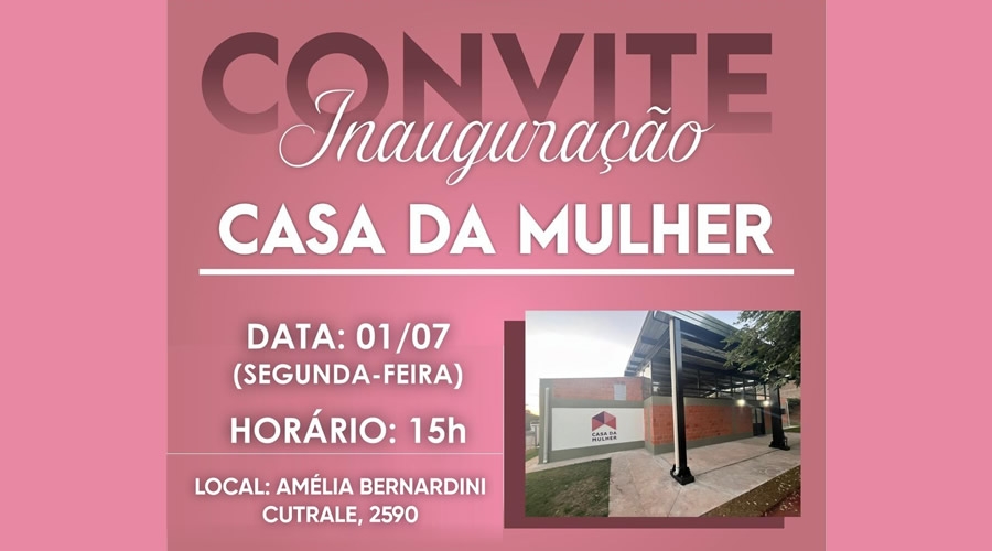 A Prefeitura de Bebedouro, através da Secretaria Municipal de Desenvolvimento Social e Cidadania, realizará na segunda-feira (01/07), às 15 horas, a inauguração da Casa da Mulher, que recebe o nome, “Maria Regina Galletti”.