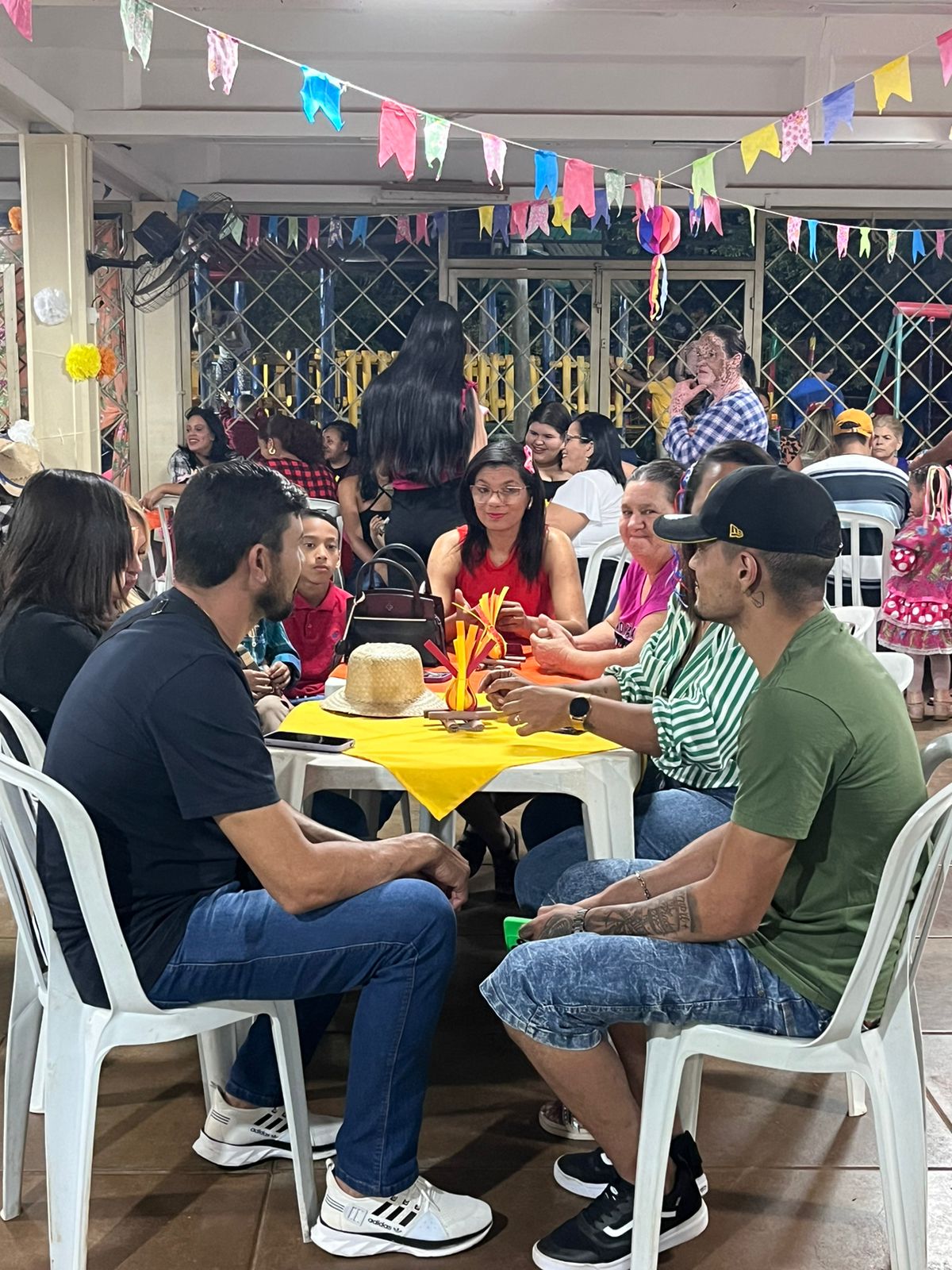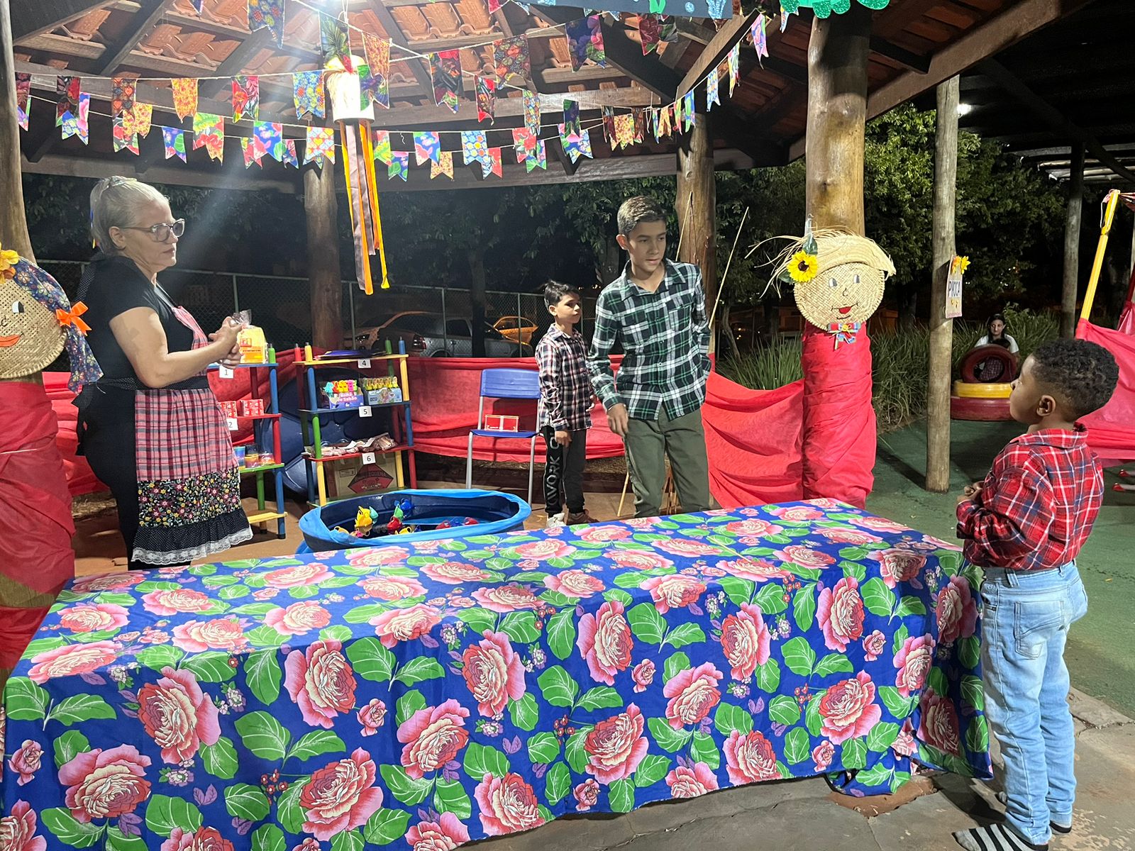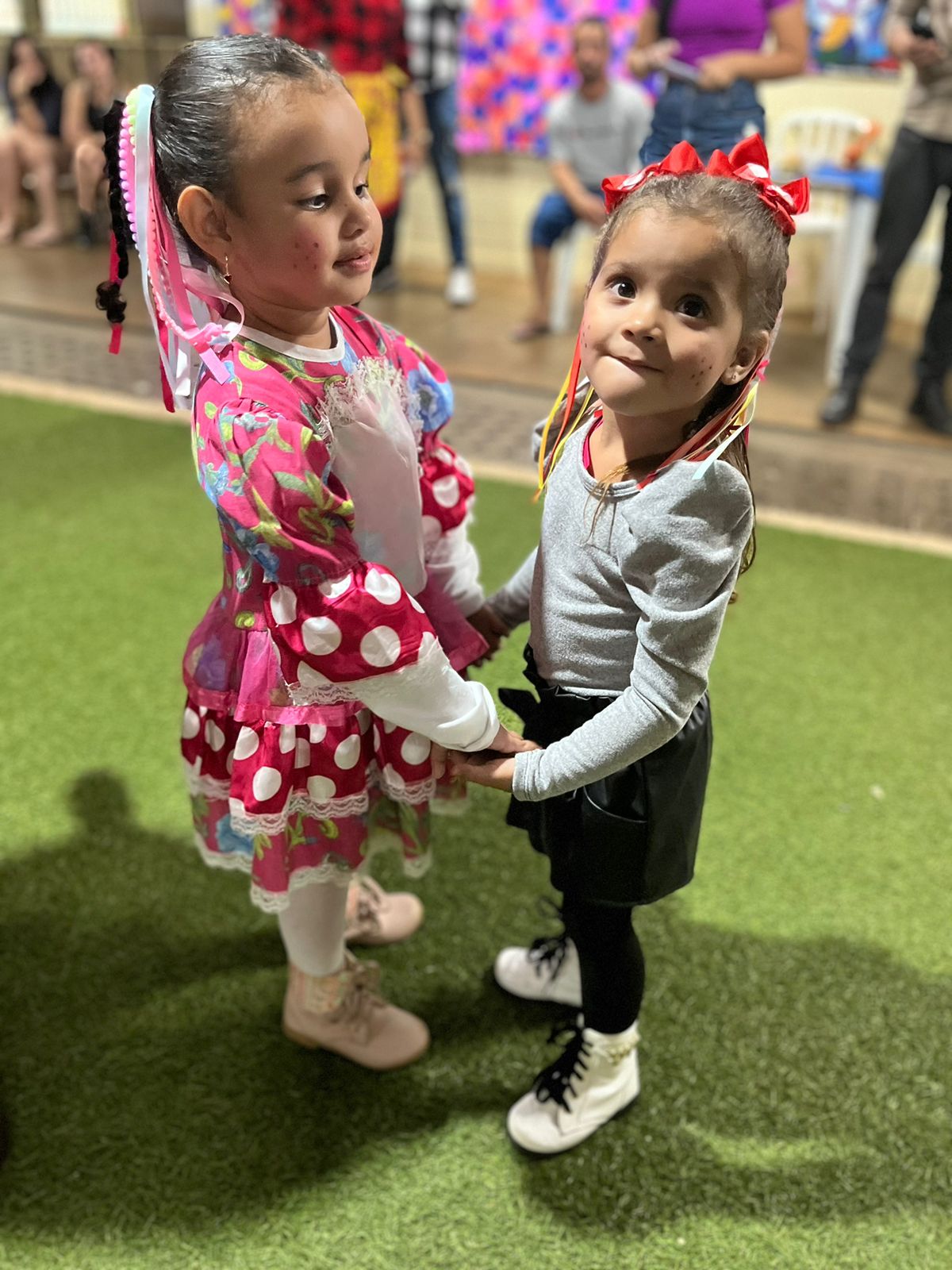 O evento incluiu apresentações de dança das crianças, barracas de comidas, cama elástica e muita música. As famílias participaram ativamente, trazendo um clima de confraternização.