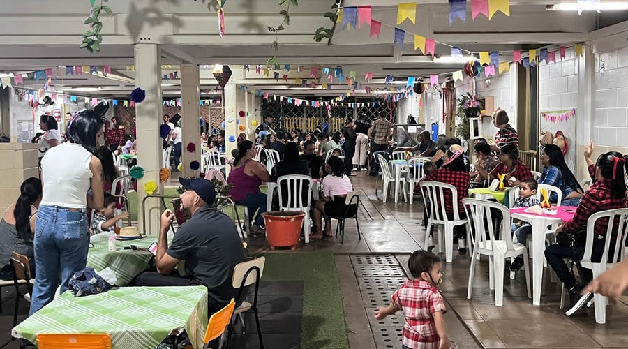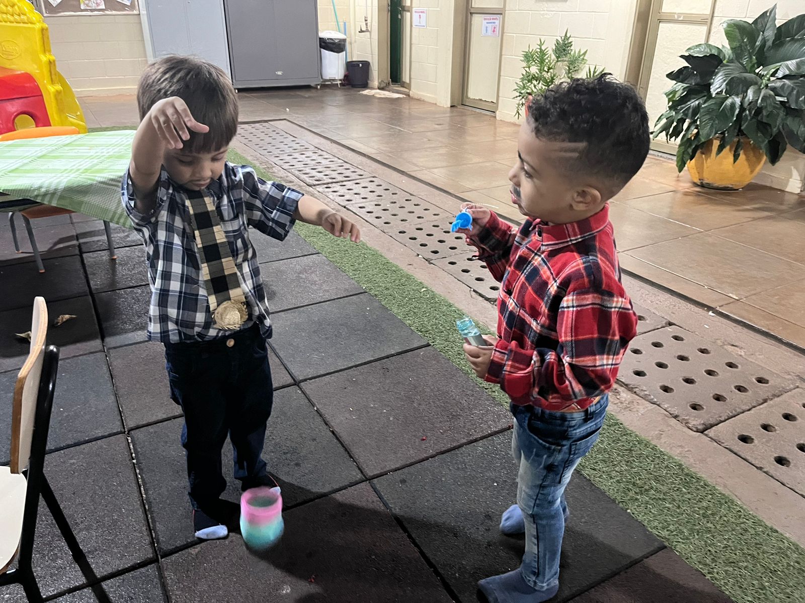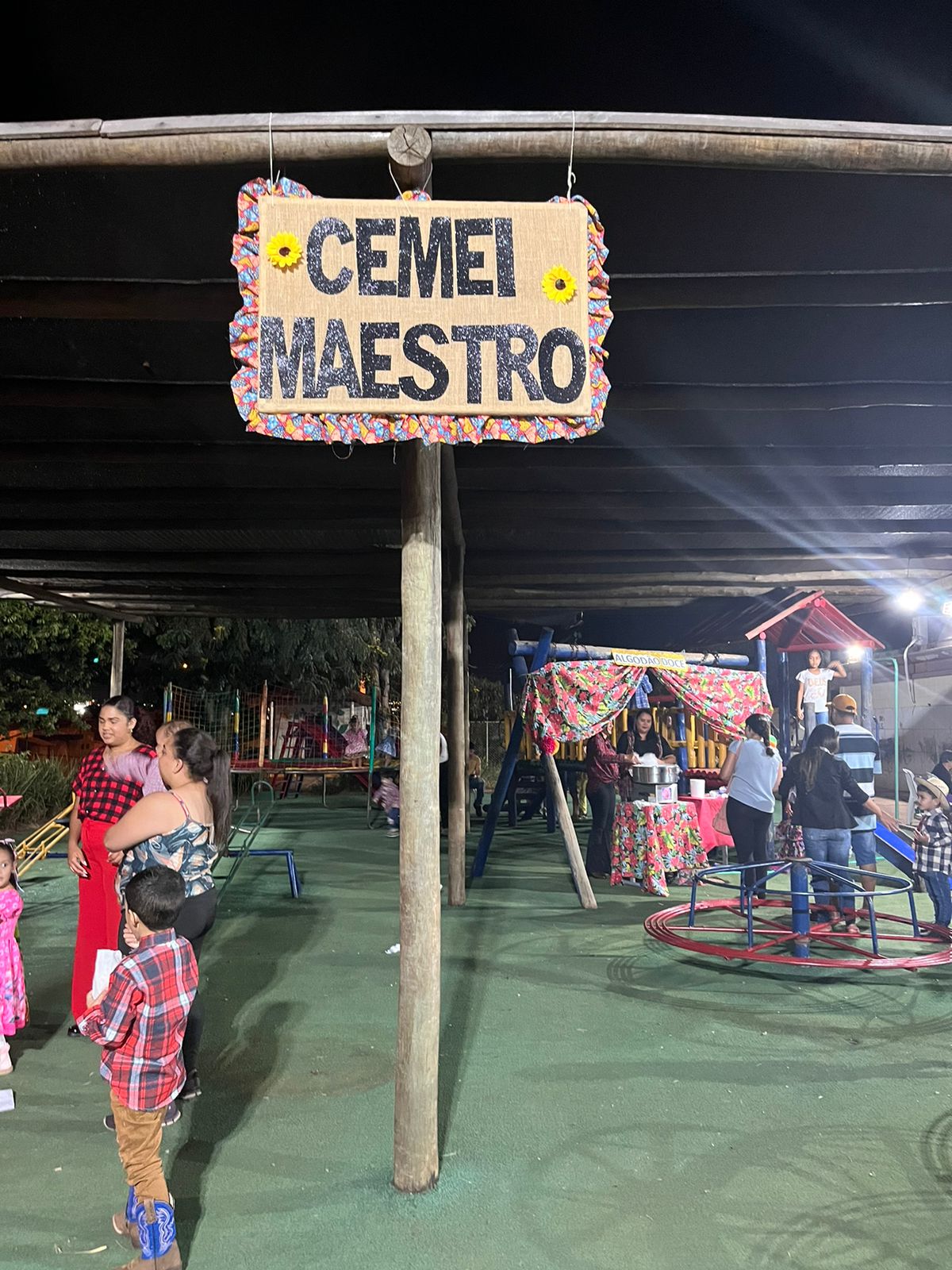 O evento incluiu apresentações de dança das crianças, barracas de comidas, cama elástica e muita música. As famílias participaram ativamente, trazendo um clima de confraternização.