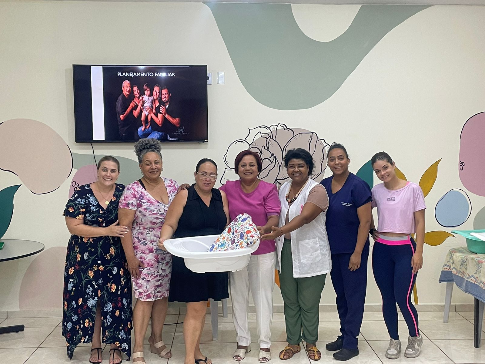 Foram 6 encontros abordando os temas, a importância do pré-natal, amamentação, cuidados com recém-nascido, orientações posturais para a gestante, saúde bucal, e o planejamento familiar. Na etapa final, as gestantes receberam um kit para o bebê.