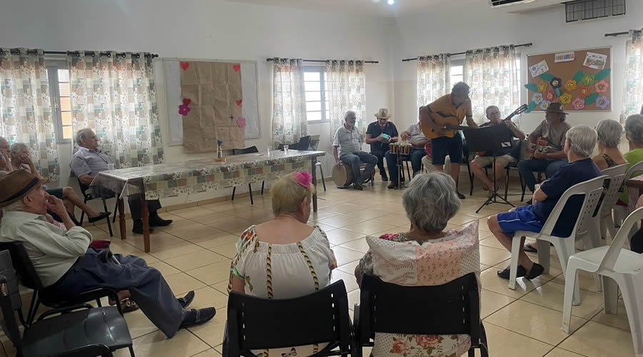 A Orquestra "Violeiros Tropeiros de Bebedouro", esteve no local proporcionando um momento de lazer com muita música e diversão para os idosos.