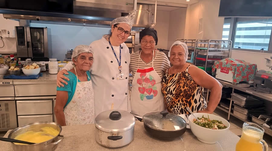 Foram elaborados pratos leves e comidas saborosas, especialmente com cardápio voltado para os idosos. O curso foi ministrado pela docente Maria Fernanda Massabni.
