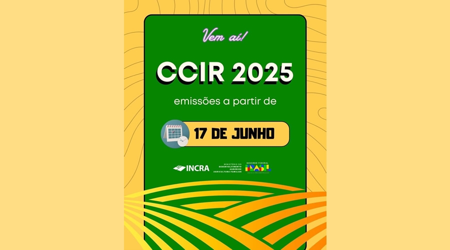 Certificado de Cadastro de Imóvel Rural (CCIR) estará disponível para emissão a partir de 17 de junho