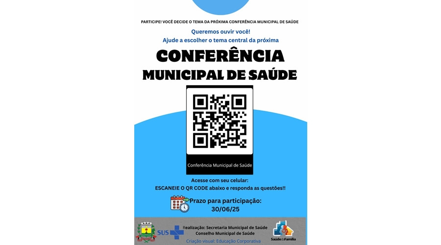 A Prefeitura de Bebedouro, através da Secretaria de Saúde, realizará a Conferência Municipal de Saúde, e convida a população para ajudar a escolher o tema central do evento.