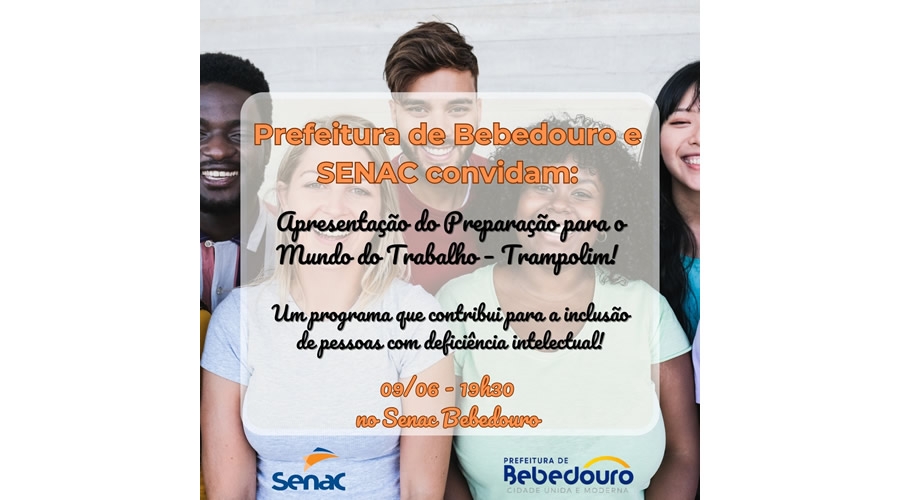 A Prefeitura de Bebedouro, em parceria com o SENAC, convida para a Apresentação do Programa de Preparação para o Mundo do Trabalho - Trampolim.