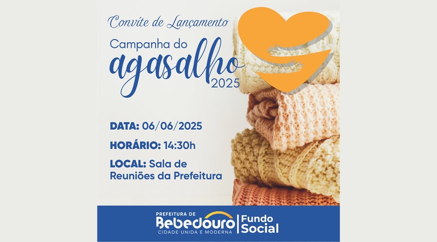 A Prefeitura Municipal de Bebedouro, através do Fundo Social de Solidariedade de Bebedouro, convida para participar do lançamento oficial da Campanha do Agasalho 2025.