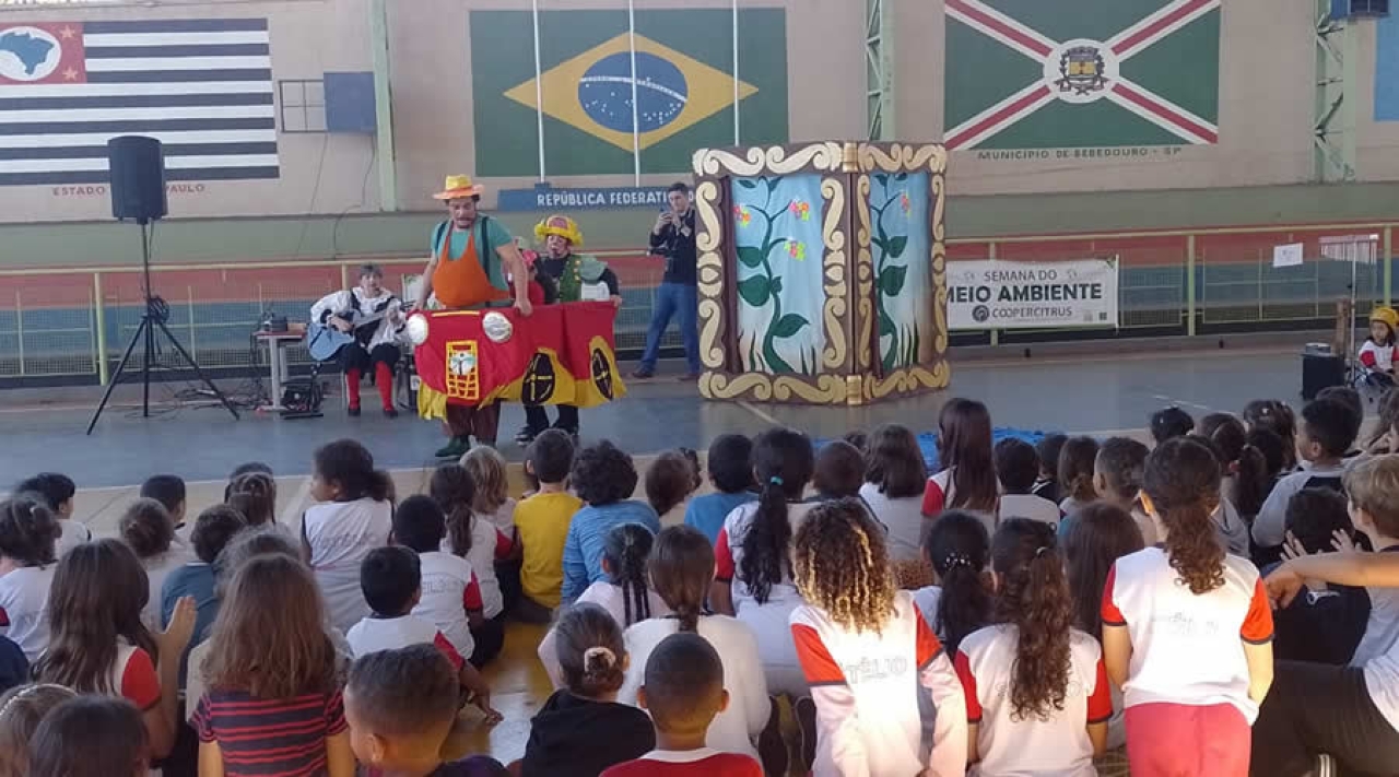 A Prefeitura de Bebedouro, por meio da Secretaria Municipal de Educação (SEMEB), em parceria com a Coopercitrus, realizou o projeto Teatro na Escola com a apresentação do espetáculo “A Água que Fugiu do Lago”, da Cia. Teatral Arueiras do Brasil.