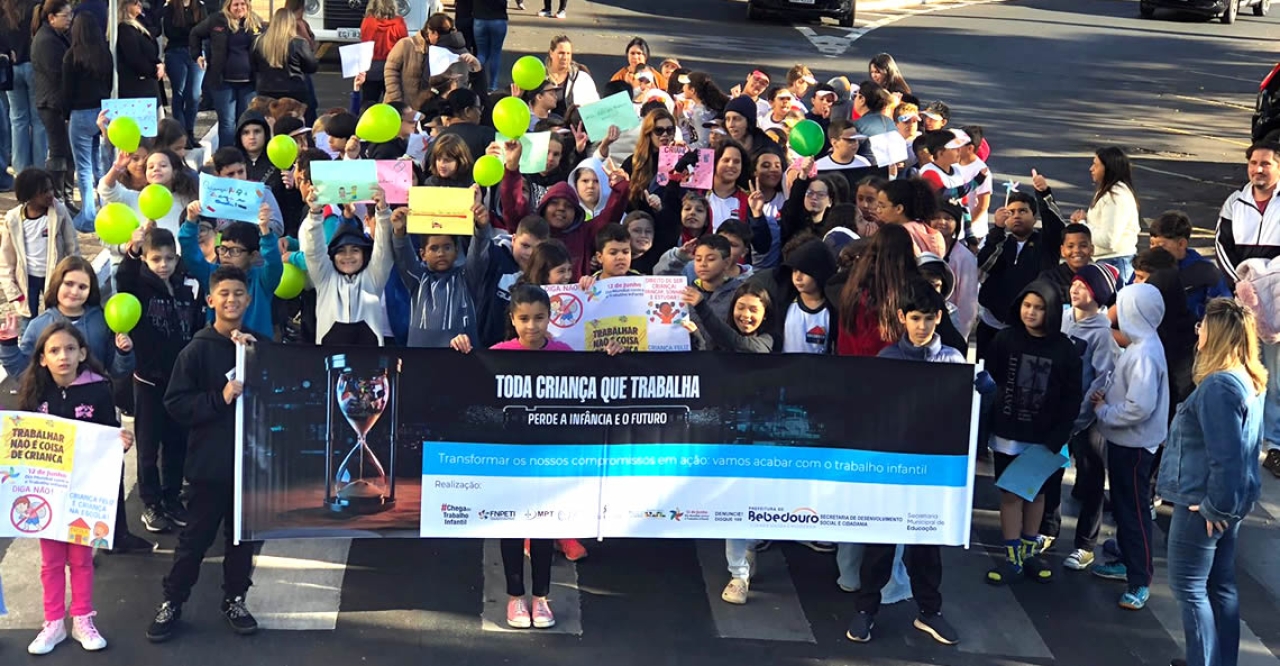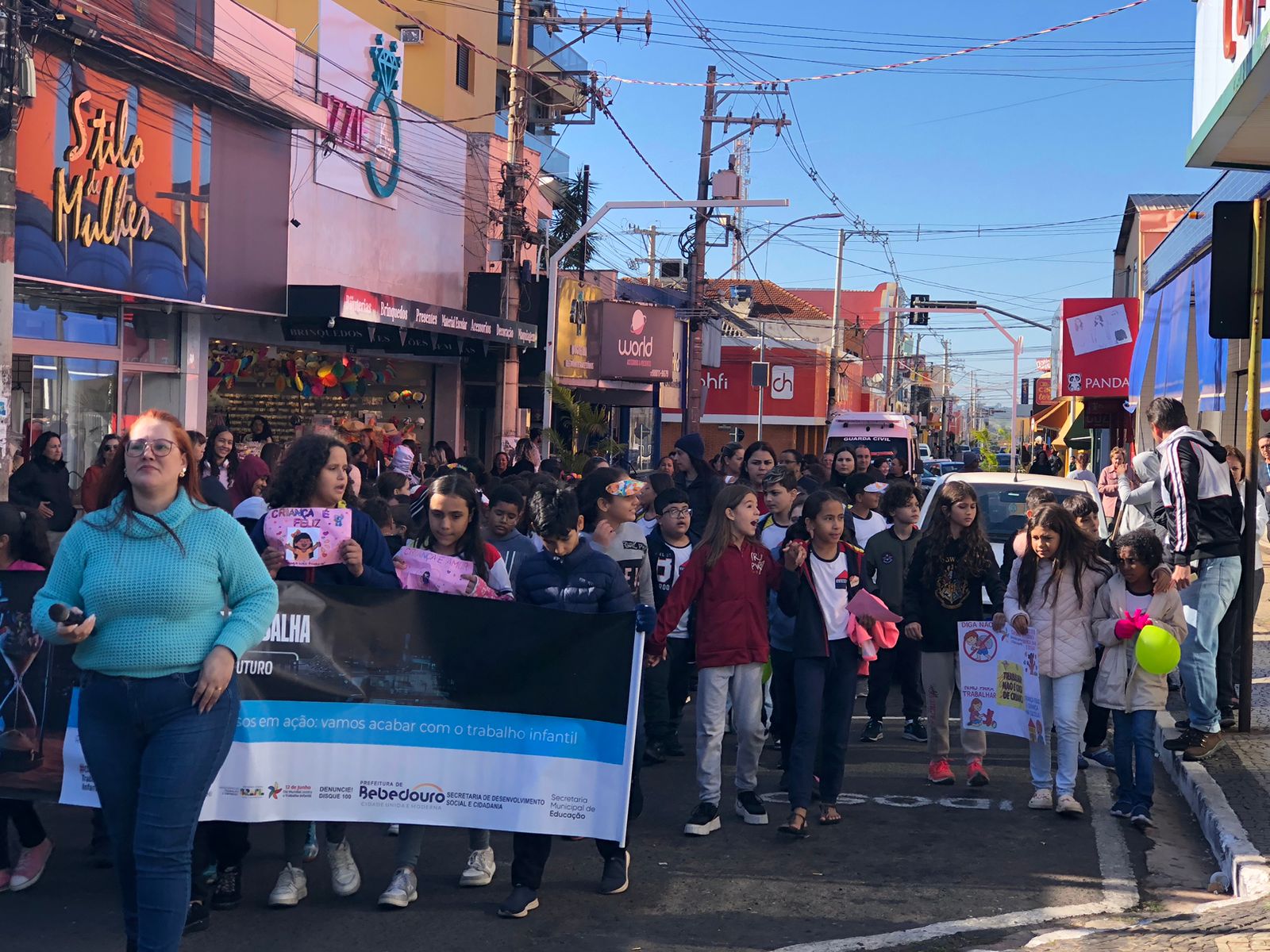A Prefeitura Municipal de Bebedouro, por meio da Secretaria de Desenvolvimento Social e Cidadania e Secretaria de Educação, realizaram a Caminhada do Dia Mundial contra o Trabalho Infantil em Bebedouro.