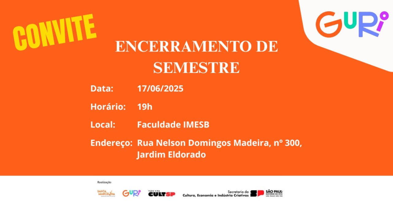 A Prefeitura de Bebedouro, em parceria com o Projeto Guri – polo Bebedouro, tem o prazer de convidar para prestigiar o Encerramento de Semestre, marcado por uma apresentação dos alunos, demonstrando todo o aprendizado e talento desenvolvido ao longo dos últimos meses.