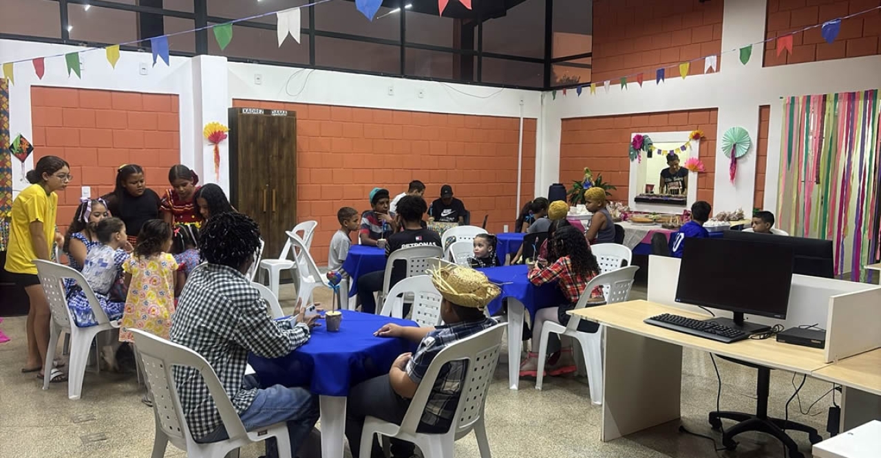 A Prefeitura de Bebedouro, por meio da Secretaria de Desenvolvimento Social e Cidadania, promoveu uma animada festa junina na Casa da Juventude. O evento reuniu as crianças e adolescentes atendidos pela casa, em uma tarde especial com comidas típicas, decoração temática, brincadeiras e muita alegria.