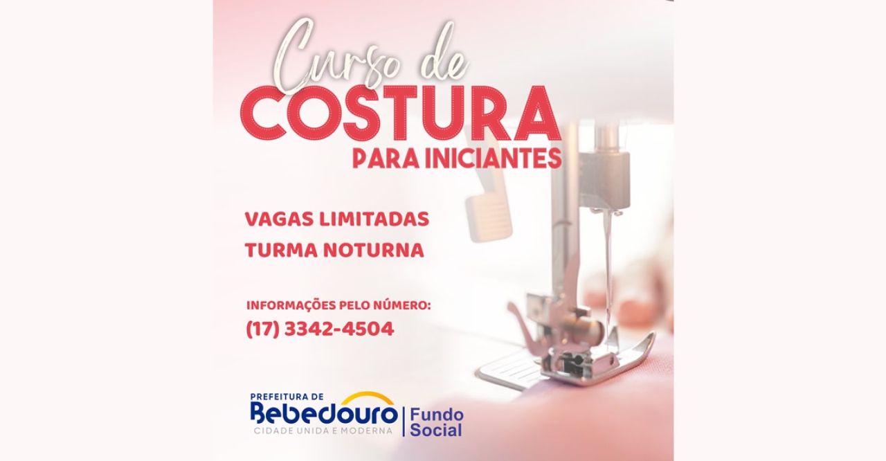 A Prefeitura de Bebedouro, por meio do Fundo Social de Solidariedade, abre inscrições para o curso gratuito de Corte e Costura para iniciantes, com início para o dia 4 de agosto (segunda-feira).