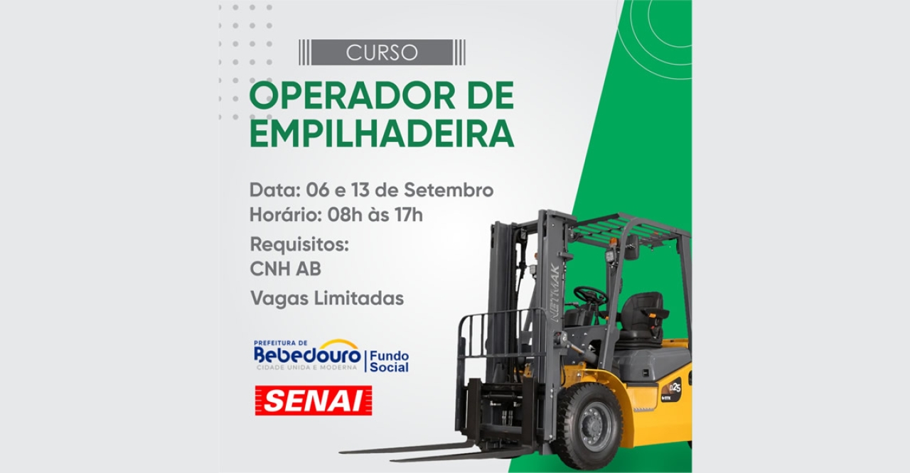 A Prefeitura de Bebedouro, por meio do Fundo Social de Solidariedade, em parceria com o SENAI, abre inscrições para o curso de Operador de Empilhadeira.