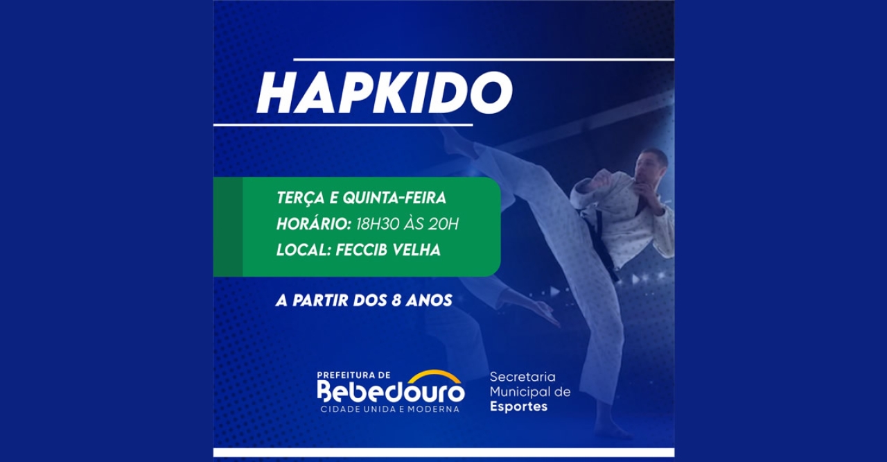 A Prefeitura de Bebedouro, através da Secretaria Municipal de Esportes (SME), oferece gratuitamente aulas de Hapkido, uma arte marcial de origem coreana que desenvolve a defesa pessoal, disciplina, concentração e condicionamento físico.