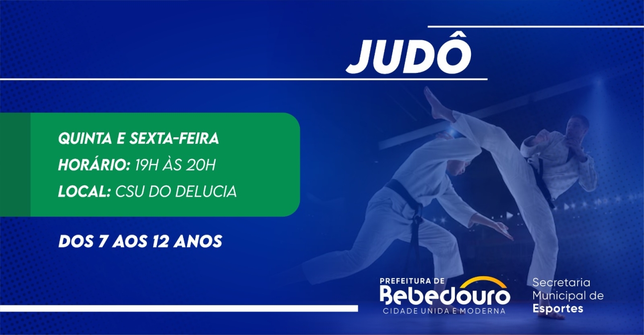 A Prefeitura de Bebedouro, através da Secretaria Municipal de Esportes (SME), oferece gratuitamente aulas de Judô, uma arte marcial que vai muito além das técnicas de luta. A modalidade trabalha valores como disciplina, respeito, concentração e autoconfiança, além de contribuir para o desenvolvimento físico, coordenação motora e socialização das crianças.