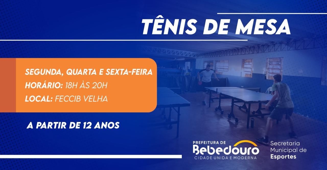 A Prefeitura de Bebedouro, por meio da Secretaria Municipal de Esportes (SME), oferece gratuitamente aulas de Tênis de Mesa, modalidade que trabalha concentração, agilidade e coordenação motora, além de ser uma ótima opção para socialização e lazer.