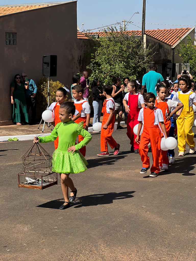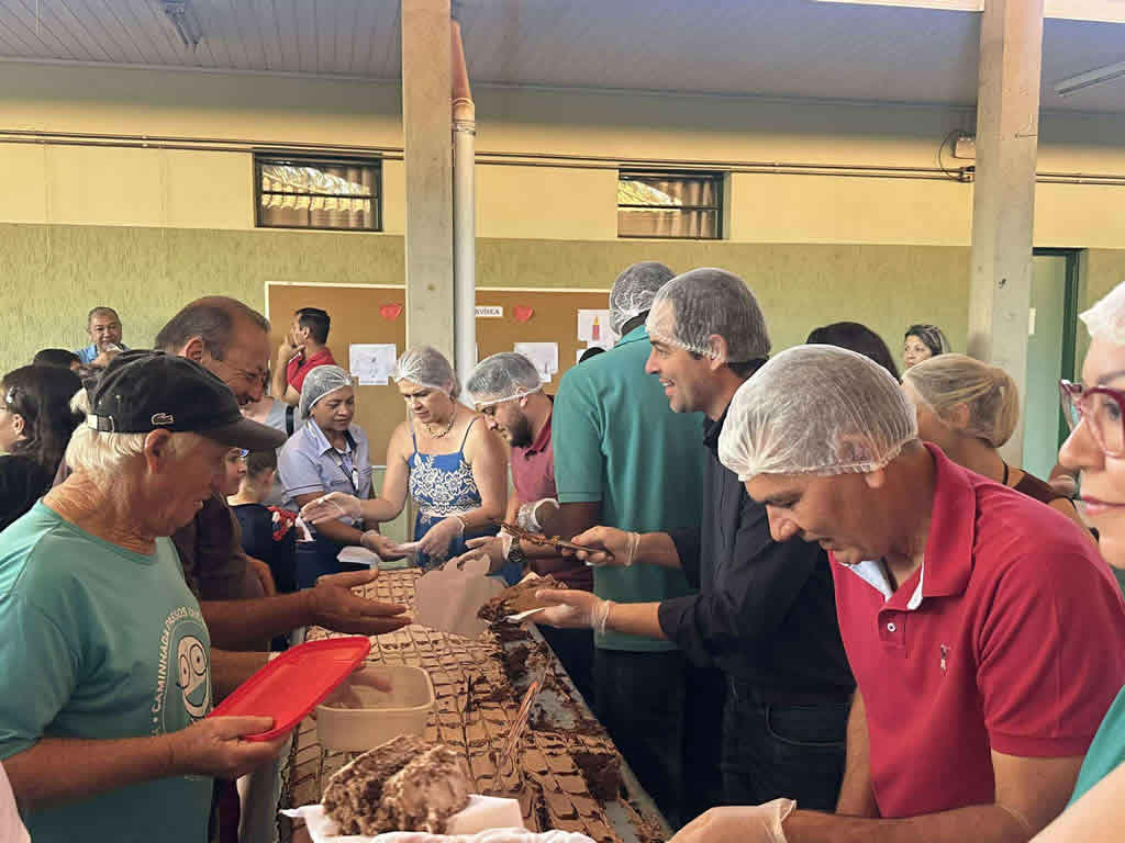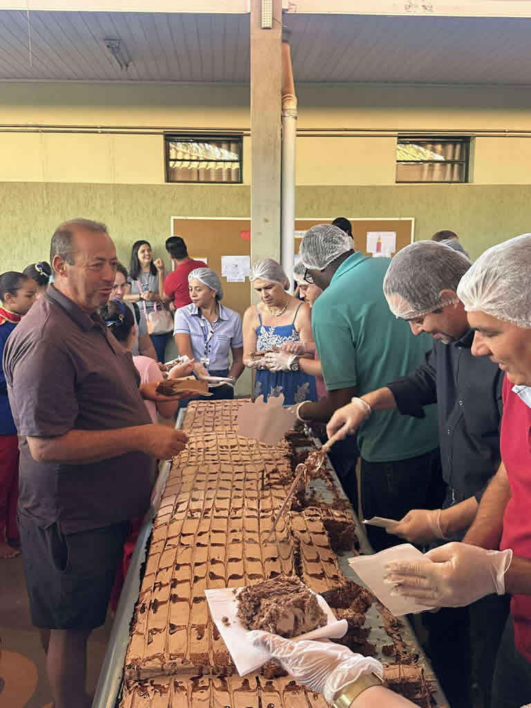 Após o desfile, todos participaram do momento mais esperado: o tradicional bolo de aniversário, preparado pela equipe da Central de Alimentação. O bolo de chocolate foi distribuído aos presentes, simbolizando o carinho e a gratidão por mais um ano de história do distrito.