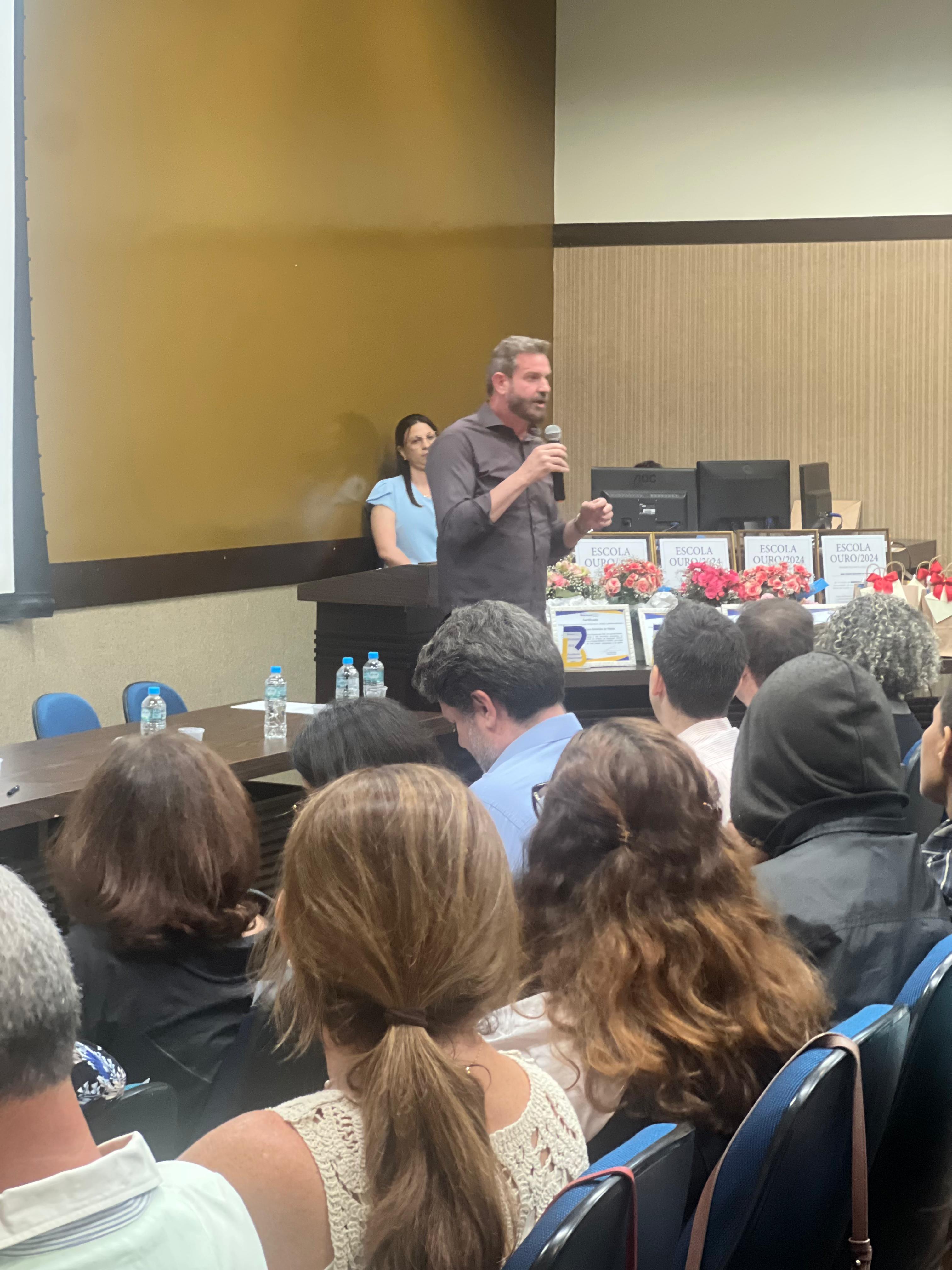 A cerimônia também foi marcada pela entrega do Prêmio Excelência Educacional 2024, um reconhecimento às quatro escolas municipais que alcançaram os critérios estabelecidos pelo SARESP e pelos indicadores de alfabetização. Foram homenageadas, EMEB Dr. Augusto Vieira, EMEB Coronel Conrado Caldeira, EMEB Lellis do Amaral Campos, e EMEB Octávio Guimarães de Toledo.