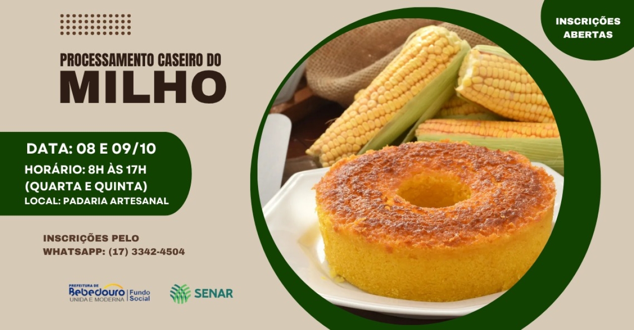 A Prefeitura de Bebedouro, por meio do Fundo Social de Solidariedade, em parceria com o SENAR/SP, está com inscrições abertas para o curso gratuito de Processamento Caseiro do Milho.