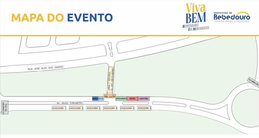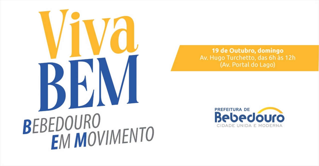 A Prefeitura de Bebedouro, através da Secretaria de Esportes e da Secretaria de Desenvolvimento Econômico, realiza neste domingo (19/10), das 6h às 12h, o projeto “Viva Bem – Bebedouro em Movimento”, na Avenida Hugo Turchetto, no Portal do Lago.