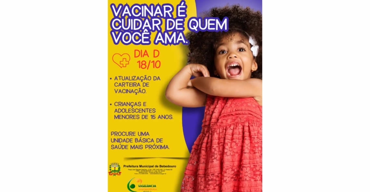 A Prefeitura de Bebedouro, através da Secretaria Municipal de Saúde (SMS), realiza neste sábado, 18 de Outubro, o Dia D, a Campanha de Multivacinação, em todas as unidades básicas de saúde do município, das 8h às 16h.