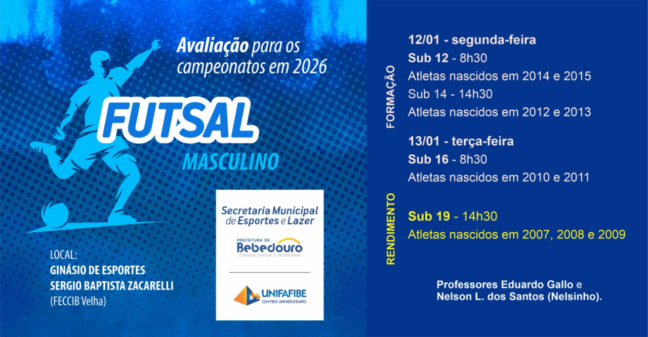 Em janeiro de 2026 acontecerá uma avaliação, conhecida como ‘‘peneira’’, para atletas integrarem as equipes da secretaria.