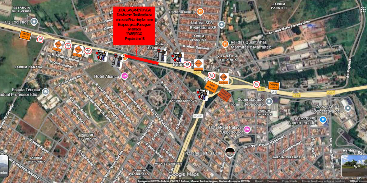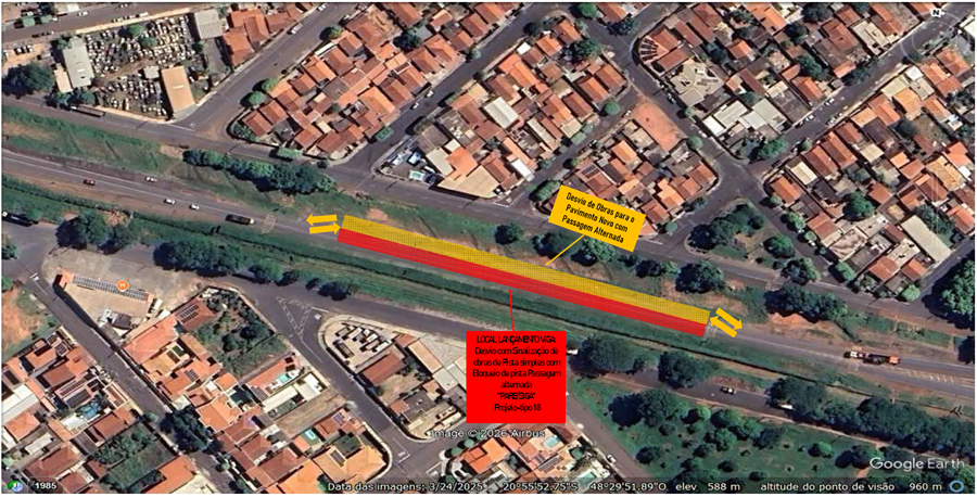 A medida será necessária para a operação de lançamento da passarela de pedestres, serviço que será realizado pelo Consórcio Bandeirantes / AUTEM.