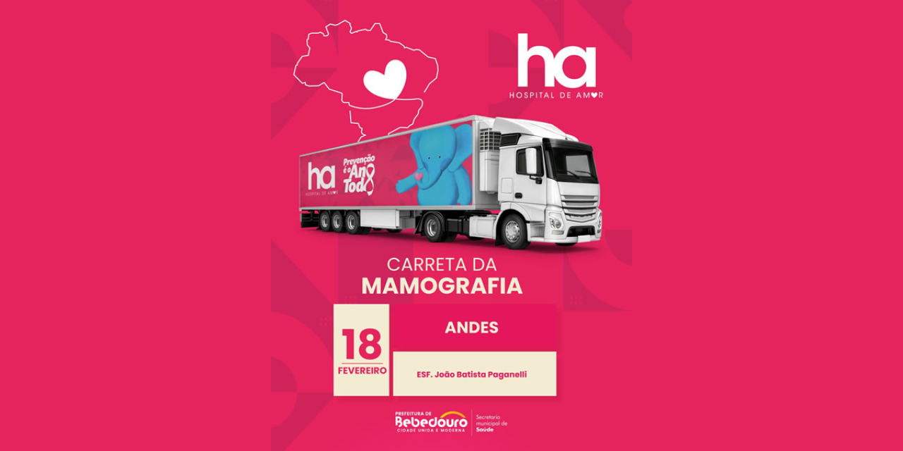A Prefeitura de Bebedouro, através da Secretaria Municipal de Saúde (SMS), em parceria com o Hospital de Amor, realizará mais uma ação de prevenção ao câncer de mama, com a presença da Carreta da Mamografia.