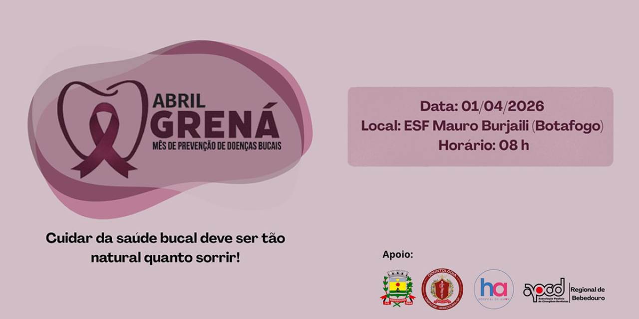 A Prefeitura de Bebedouro, através da Secretaria Municipal de Saúde (SMS), realiza na quarta-feira, dia 1º de abril, às 8h, uma ação especial da campanha Abril Grená, mês dedicado à prevenção de doenças bucais.