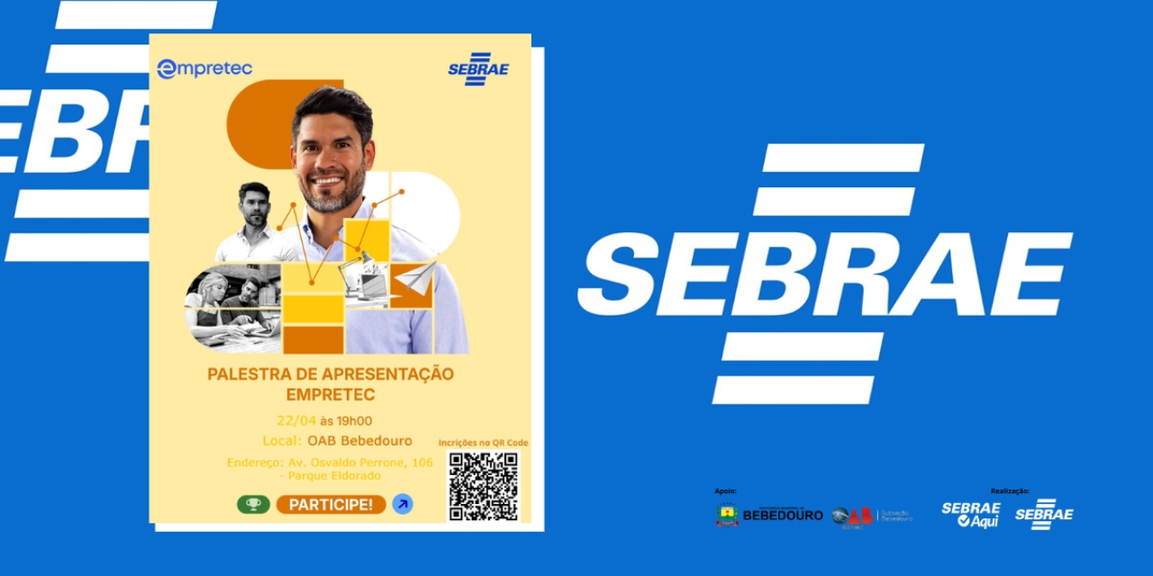 A Prefeitura de Bebedouro, em parceria com o Sebrae, convida para a Palestra de Apresentação do Empretec, uma oportunidade para quem deseja destravar seu potencial empreendedor ou levar sua empresa para o próximo nível.