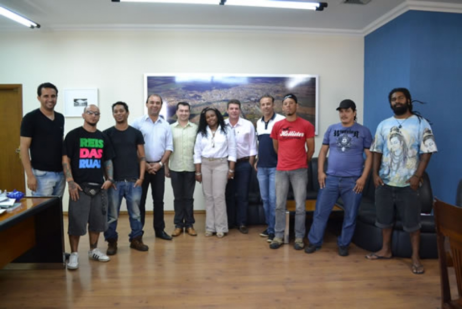 Em reunião no gabinete do prefeito municipal, estiveram os grafiteiros da cidade, na tarde da segunda-feira (2), para apresentar e aprovar os desenhos que serão reproduzidos nos muros do estádio da Feccib velha, na 1ª Mostra de Arte de Rua de Bebedouro, que acontecerá nos dias 26 e 27 de outubro.